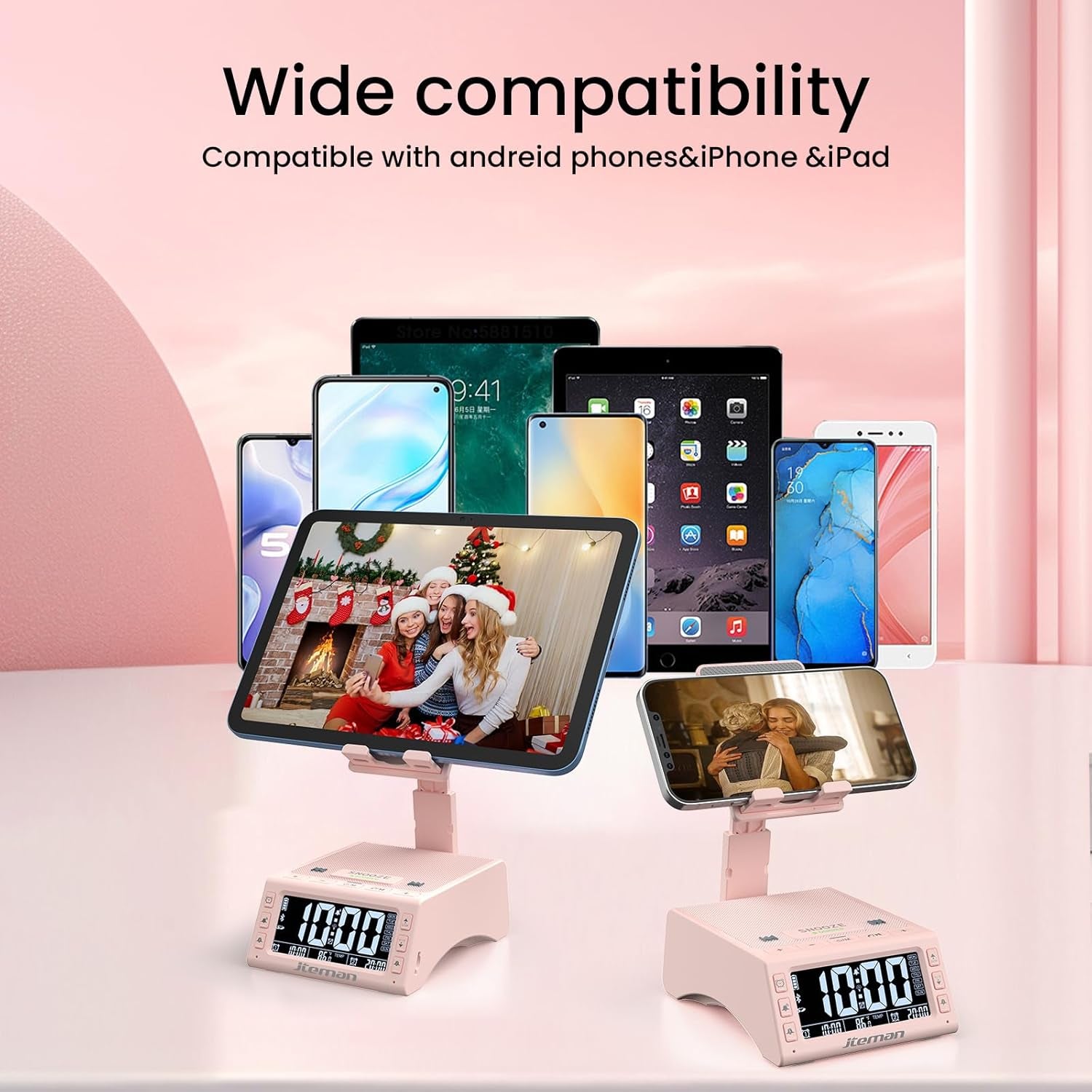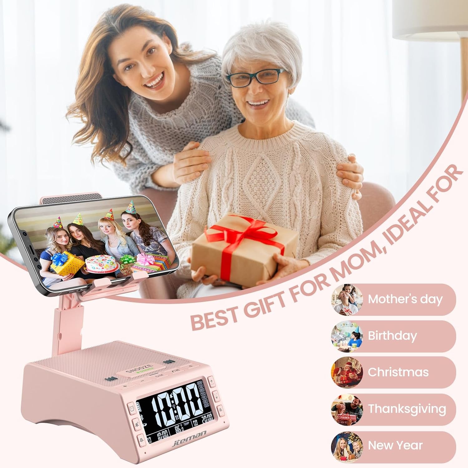 Gifts for Men Women,Cell Phone Stand with Wireless Bluetooth Speaker,Adjustable Cool Tech Kitchen Gadgets,Unique Birthday Gift Idea for Him, Husband, Boyfriend(Pink)